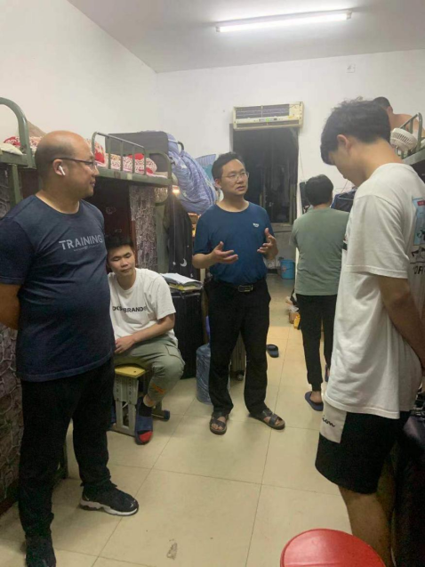 為推動學(xué)生管理工作,更好的將學(xué)生工作深入到學(xué)生中去,及時(shí)了解學(xué)生情況,特別是畢業(yè)生情況。正值端午佳節(jié)到來,何美生書記、何文華副書記、聯(lián)合保衛(wèi)處和全院各輔導(dǎo)員對7號棟宿舍進(jìn)行調(diào)查走訪。在走訪中,何美生書記親切慰問同學(xué)們今天有沒有吃粽子,大家的學(xué)習(xí)情況如何,現(xiàn)在畢業(yè)設(shè)計(jì)準(zhǔn)備情況怎么樣了,有沒有找到工作。