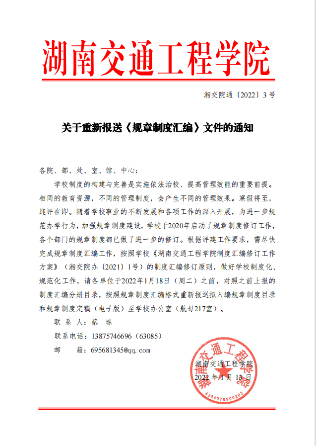 關(guān)于重新報送《規(guī)章制度匯編》文件的通知