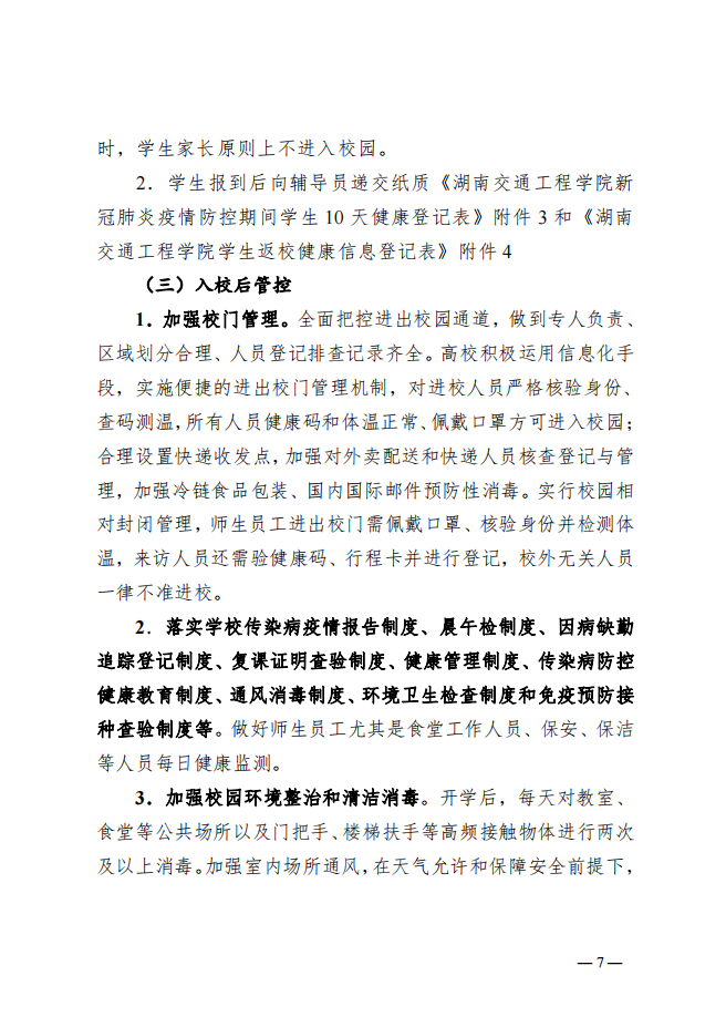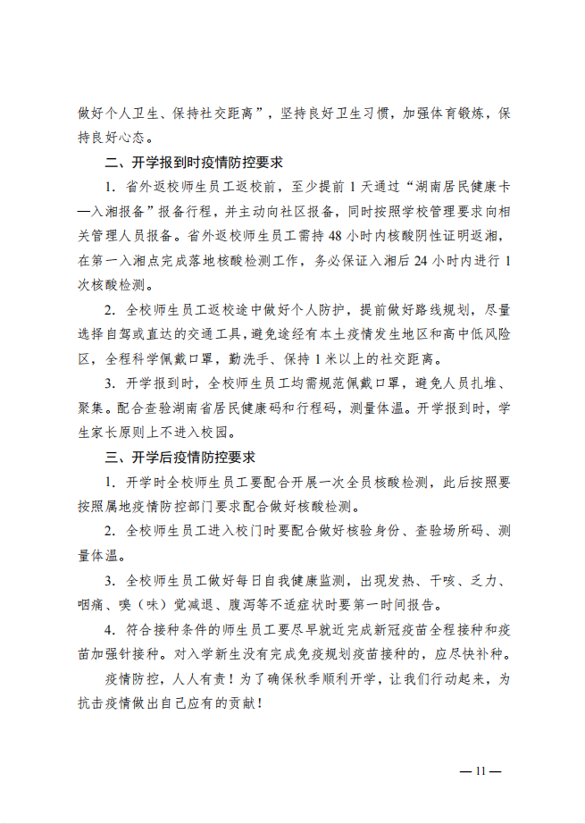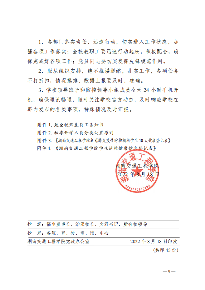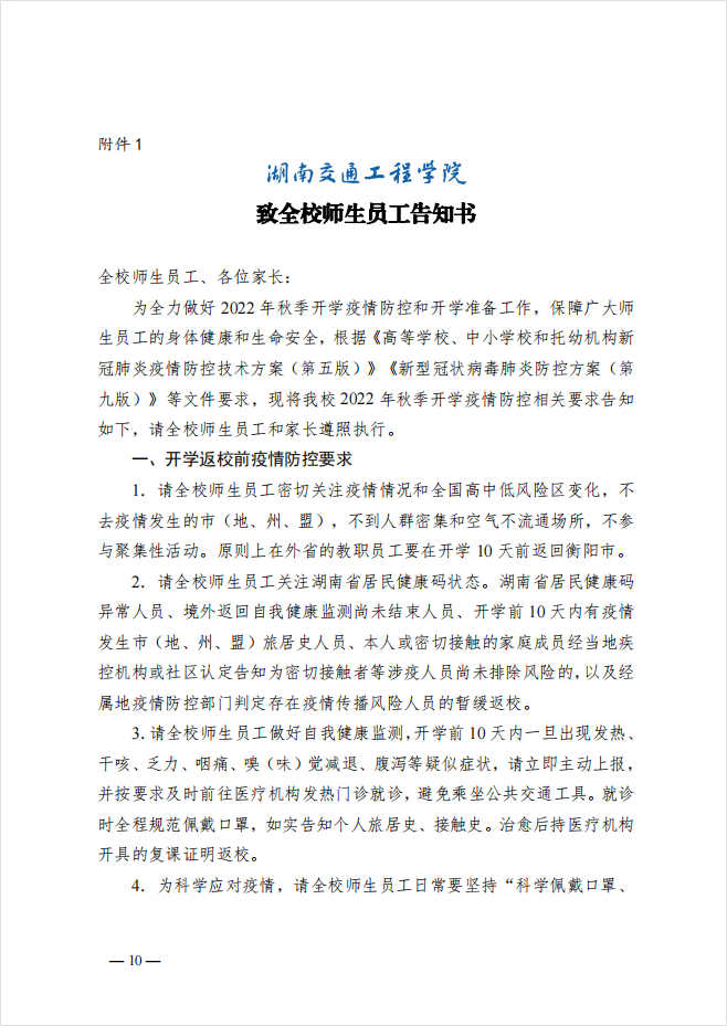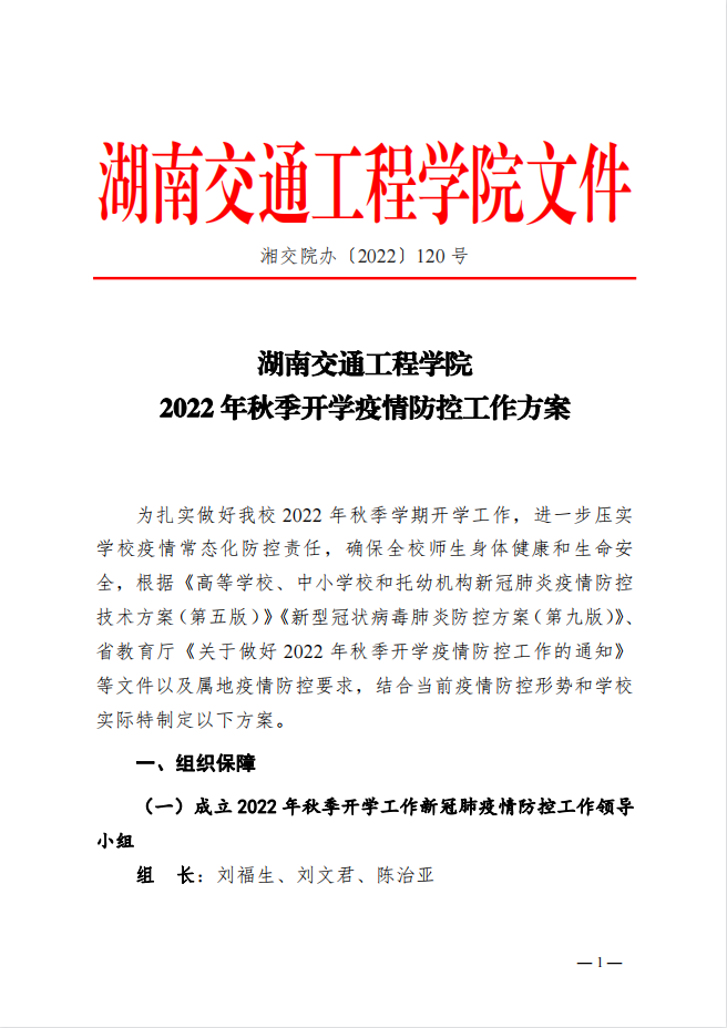 湖南交通工程學(xué)院2022年秋季開學(xué)疫情防控工作方案
