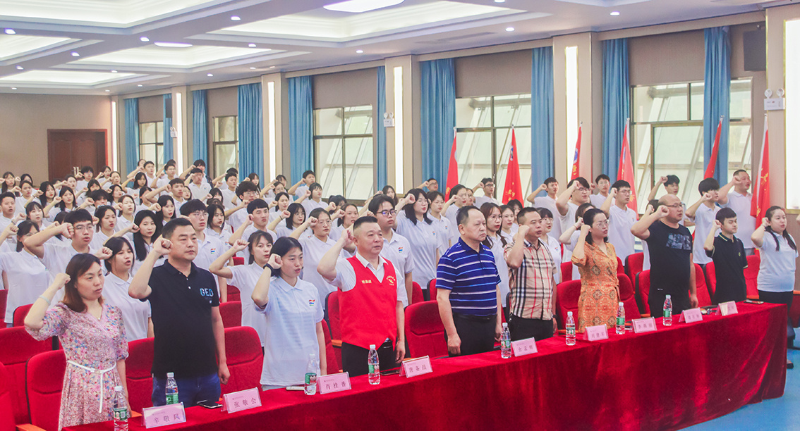 本網(wǎng)訊(記者 趙紅深 通訊員 曾歌)6月19日,我校在航母樓101舉行2022年大學(xué)生暑期“三下鄉(xiāng)”社會實踐活動出征儀式,為即將走進基層學(xué)知識、走近群眾長見識、走向一線作貢獻的志愿者們壯行。副校長余孟輝出席并授旗,學(xué)校相關(guān)職能部門負責(zé)人,各二級學(xué)院團總支書記、指導(dǎo)教師代表、社會實踐隊員150余人參加出征儀式。衡陽市政協(xié)委員、衡陽市備戰(zhàn)青年志愿者協(xié)會會長、湖南省志愿者協(xié)會副會長、衡陽市網(wǎng)絡(luò)志愿者協(xié)會副會長唐備戰(zhàn)應(yīng)邀到會指導(dǎo)。出征儀式由校團委書記漆在林主持。