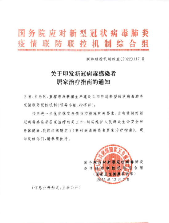 關(guān)于印發(fā)新冠病毒感染者居家治療指南的通知