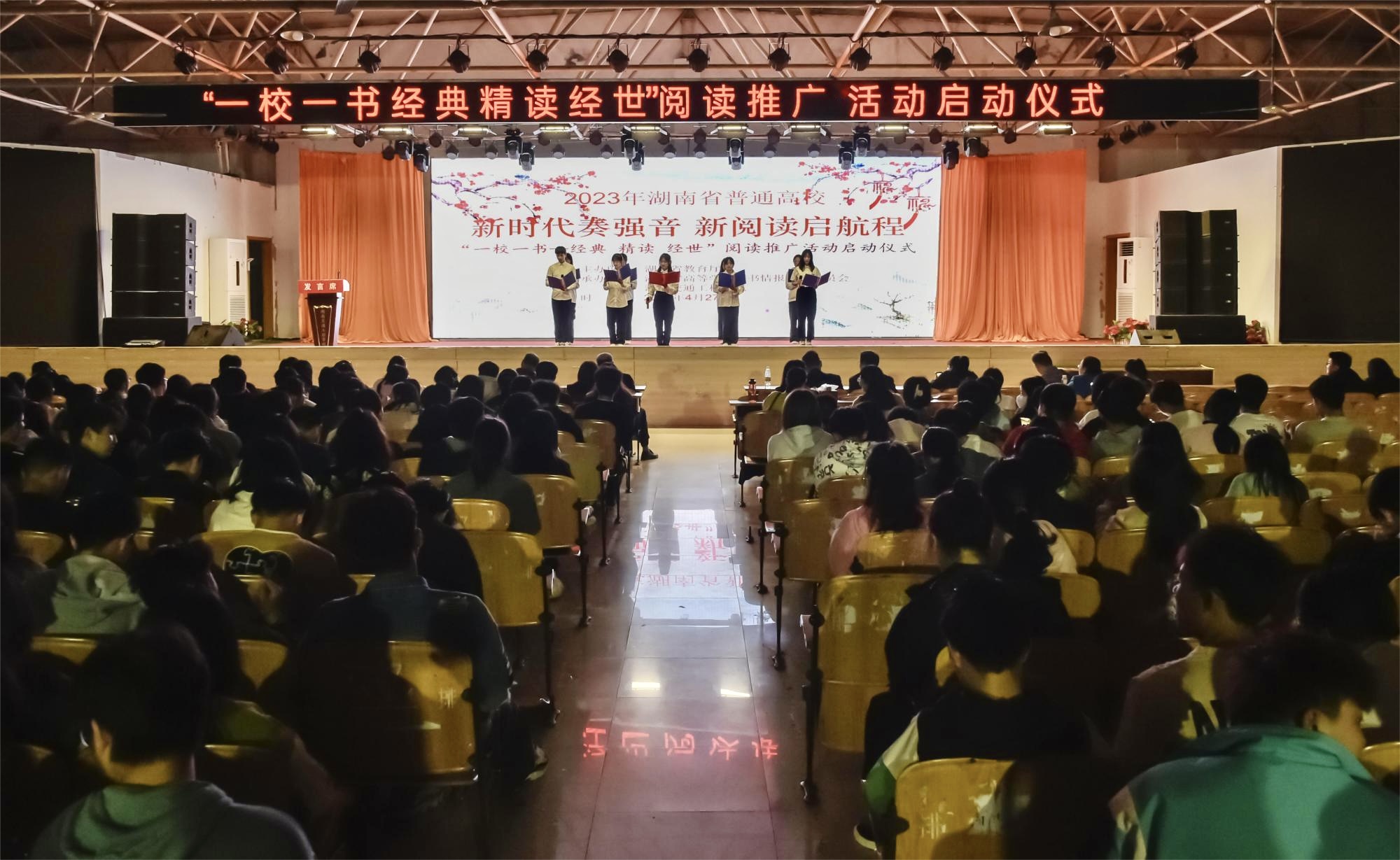本網(wǎng)訊(記者 趙紅深 攝影 李建華)根據(jù)湖南省教育廳《關(guān)于做好2023年全省普通本科高?!耙恍R粫?jīng)典、精讀、經(jīng)世”閱讀推廣活動(dòng)的通知》要求,我校2023年“一校一書——經(jīng)典、精讀、經(jīng)世”閱讀推廣活動(dòng)已于4月正式啟動(dòng)。4月27日晚,學(xué)校在大學(xué)生活動(dòng)中心舉行2023年“一校一書”閱讀推廣活動(dòng)啟動(dòng)儀式,黨委副書記李先聰?shù)綍?huì)并致辭,副校長(zhǎng)余孟輝宣讀學(xué)校2022年“一校一書”閱讀推廣活動(dòng)表彰文件。各二級(jí)學(xué)院黨總支書記、副書記、學(xué)生支部書記,黨務(wù)部門負(fù)責(zé)人,圖書館全體成員,全體輔導(dǎo)員,團(tuán)學(xué)干部代表、優(yōu)秀學(xué)生代表近2000人參加活動(dòng)。校團(tuán)委書記漆在林主持。