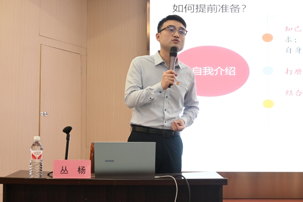 湖南省大學(xué)生就業(yè)引航計劃宣講團(tuán)講師、教育部首批國家級一流課程《演講與口才》主講人、湖南省演講口才學(xué)會專家委員會委員叢楊博士以《新思路,心表達(dá)——求職面試與態(tài)試語言》為題進(jìn)行開講。他圍繞如果應(yīng)對面試,從“面試者的儀表、面試者的神情、面試者的體態(tài)、面試者的心態(tài)”等方面對青年學(xué)生作了求職面試指導(dǎo),同時結(jié)合大學(xué)生成長規(guī)律,對不同年級學(xué)生應(yīng)重點培養(yǎng)和發(fā)展的核心能力給出指導(dǎo)性建議。為現(xiàn)場學(xué)生帶來了一場干貨滿滿的分享,引導(dǎo)青年學(xué)子了解企業(yè)需求、職業(yè)前景和發(fā)展定位,掌握面試技巧,以奮斗者姿態(tài)主動到基層一線砥礪青春、成就人生。