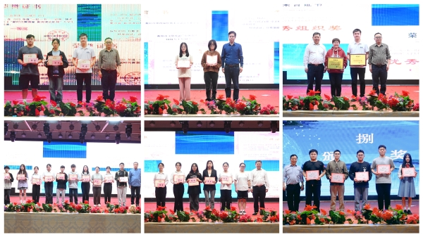 校領(lǐng)導(dǎo)為六批次獲獎?wù)哳C獎。