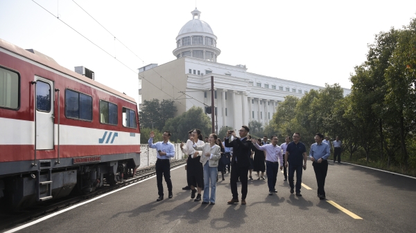 在校領(lǐng)導(dǎo)的陪同下,張巖一行參觀了我校工程實(shí)踐創(chuàng)新中心、北斗應(yīng)用開發(fā)實(shí)驗(yàn)室、無人機(jī)應(yīng)用開發(fā)實(shí)驗(yàn)室、交通大數(shù)據(jù)實(shí)驗(yàn)室、鐵道工程與交通運(yùn)輸實(shí)訓(xùn)基地、軌道交通綜合模擬實(shí)訓(xùn)基地、紅色文化教育基地等學(xué)生實(shí)訓(xùn)場(chǎng)所和黨建陣地,了解了學(xué)校在思政教育、工程訓(xùn)練、實(shí)習(xí)實(shí)訓(xùn)與創(chuàng)新創(chuàng)業(yè)等方面的情況,并在毛澤東銅像文化廣場(chǎng)合影留念。