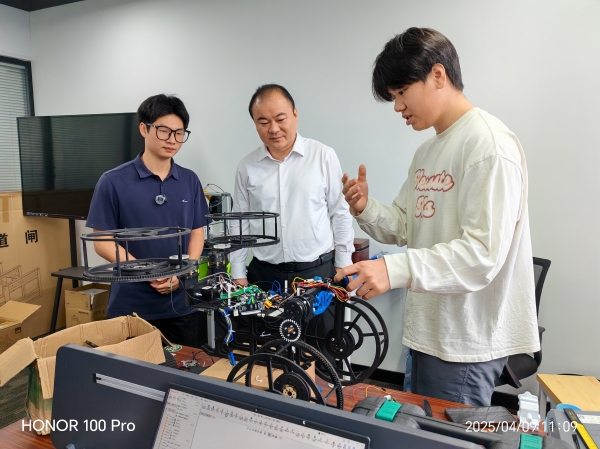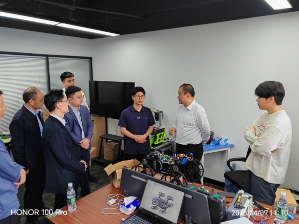 調(diào)研期間,朱健重點(diǎn)考察了團(tuán)隊(duì)科技創(chuàng)新成果。在認(rèn)真聽取"靈巧蛇影輔助救援勘測智慧機(jī)"和"三棲救援巡檢機(jī)器人"兩款創(chuàng)新作品的專題匯報后,朱健對作品的創(chuàng)新性和實(shí)用性給予高度評價,充分肯定了我校學(xué)子在科技創(chuàng)新方面展現(xiàn)出的專業(yè)素養(yǎng)和創(chuàng)造才能。朱健指出,湖南交通工程學(xué)院學(xué)生展現(xiàn)出新時代青年特有的創(chuàng)新活力和實(shí)踐能力。他勉勵同學(xué)們要持續(xù)保持創(chuàng)新熱情,將創(chuàng)新創(chuàng)業(yè)項(xiàng)目作為長期事業(yè)來發(fā)展,把專業(yè)知識轉(zhuǎn)化為實(shí)際應(yīng)用,為社會進(jìn)步貢獻(xiàn)智慧力量。