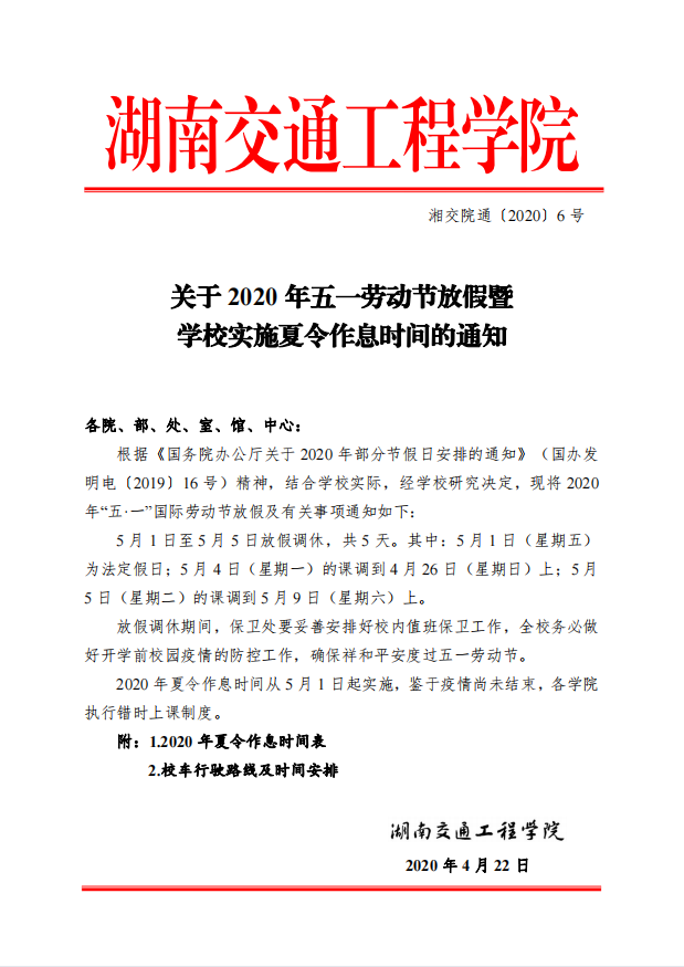 關(guān)于2020年五一勞動節(jié)放假暨學校實施夏令作息時間的通知