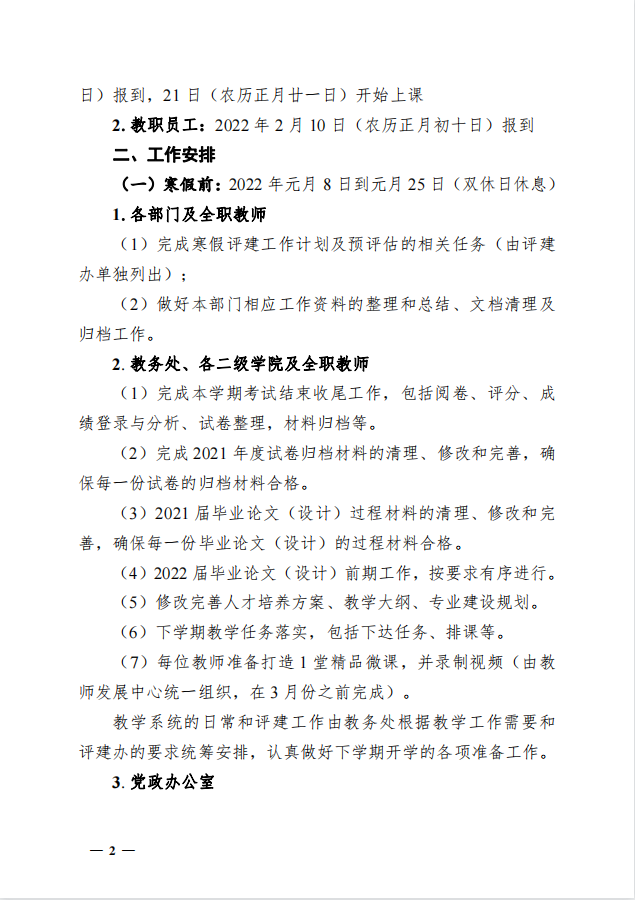 關(guān)于做好 2021-2022 學(xué)年寒假前后相關(guān)工作安排的通知