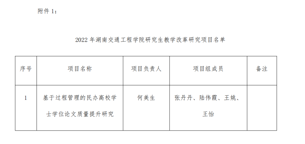 附件:2022年湖南交通工程學(xué)院研究生教學(xué)改革研究項目名單