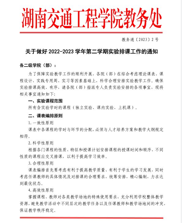 關(guān)于做好 2022-2023 學(xué)年第二學(xué)期實驗排課工作的通知