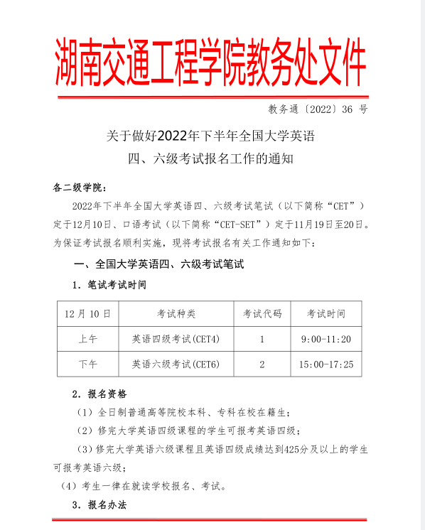 關(guān)于做好2022年下半年全國(guó)大學(xué)英語(yǔ) 四、六級(jí)考試報(bào)名工作的通知