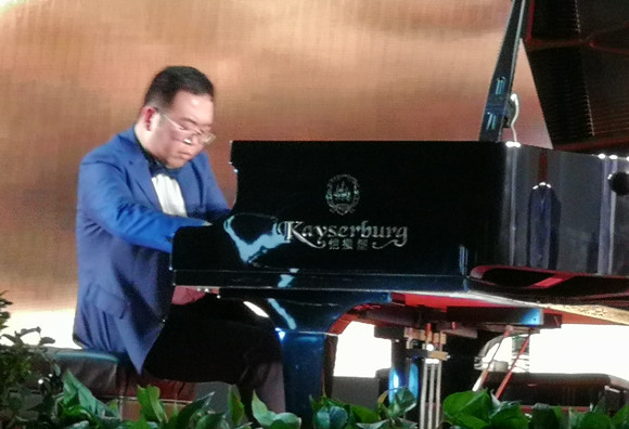 涂宇亮先生的演奏自始至終都充滿了激情,88個(gè)鋼琴黑白鍵在他那10個(gè)靈巧的手指操作下,音符如行云流水般起承轉(zhuǎn)合,就像一個(gè)氣質(zhì)優(yōu)雅靈動(dòng)十足一顰一笑舉手投足讓人不忍側(cè)目的女生般氣質(zhì)優(yōu)雅。能夠靜靜地聆聽音樂(lè)是一種心靈放松的精神享受。音樂(lè)的魔力在于它豐富的表現(xiàn)力,樂(lè)曲有時(shí)像個(gè)雄壯的男人有時(shí)像個(gè)調(diào)皮的小孩有時(shí)像個(gè)翩翩起舞的精靈。閉目養(yǎng)神的同時(shí)讓耳朵做個(gè)按摩,讓思緒被音樂(lè)帶向遠(yuǎn)方。即使身體依舊安然地坐在演播廳,但是心彷佛已經(jīng)飛到了音樂(lè)所描繪的所在。有人說(shuō)身體和心靈必須一個(gè)在路上,聽著音樂(lè)感覺(jué)人似乎到了一片凈土,身上的負(fù)能量和心里的霧霾被一消而散。全場(chǎng)觀眾在音樂(lè)的感染下,不時(shí)爆發(fā)出熱烈的掌聲。