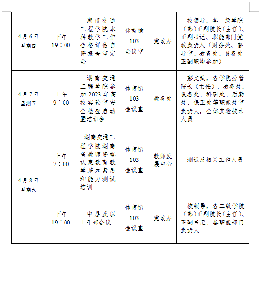 湖南交通工程學(xué)院2022-2023學(xué)年度第二學(xué)期第七周會(huì)議安排表