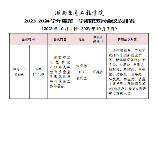 湖南交通工程學(xué)院2023-2024學(xué)年度第一學(xué)期第五周會議安排表