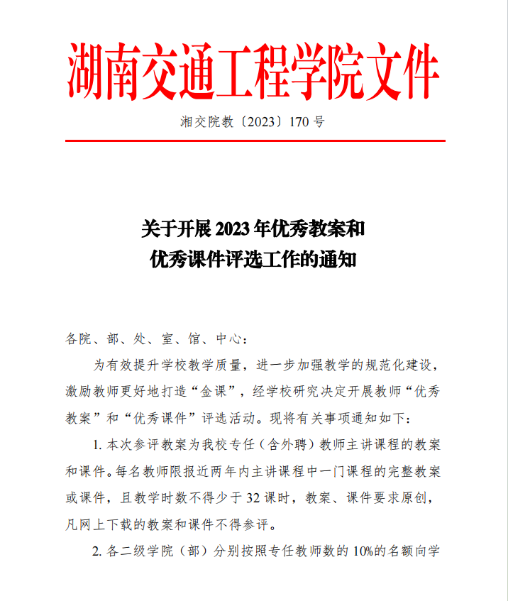 關于開展 2023 年優(yōu)秀教案和 優(yōu)秀課件評選工作的通知