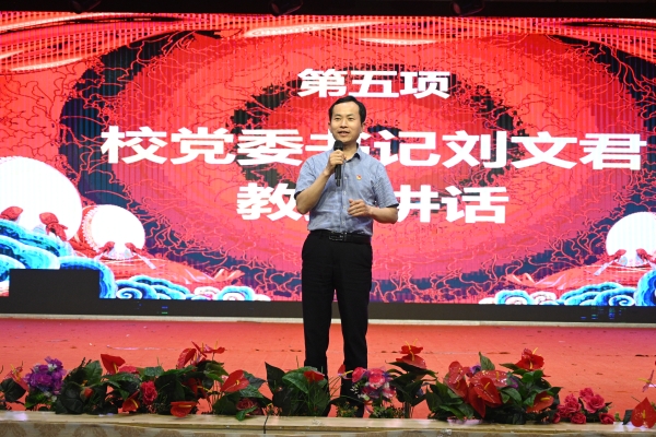 黨委書記劉文君、執(zhí)行校長劉杰、副校長余孟輝,黨政部門負責人,各二級學院院長、書記、副書記,全體輔導員出席大會,校團委、校學生會干部,受表彰的先進集體、個人和學生代表2000余人參會。