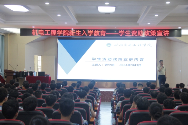 為進一步促進2024級新生全面適應大學生活,貫徹落實黨和國家的教育資助政策,提高同學們對資助政策的了解、同時增強自我保護能力和勞動素養(yǎng),湖南交通工程學院機電工程學院嚴格按照《2024級新生軍訓與“一學期體驗入學教育”實施方案》要求,于2024年9月3日上午10時成功舉辦了新生入學教育系列活動的第三場活動。