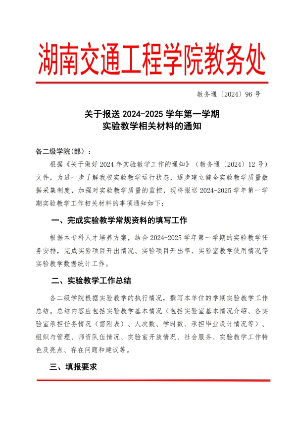 關(guān)于報(bào)送2024-2025學(xué)年第一學(xué)期實(shí)驗(yàn)教學(xué)相關(guān)材料的通知