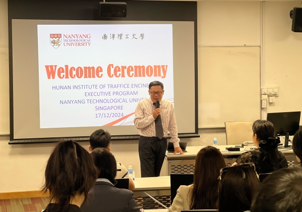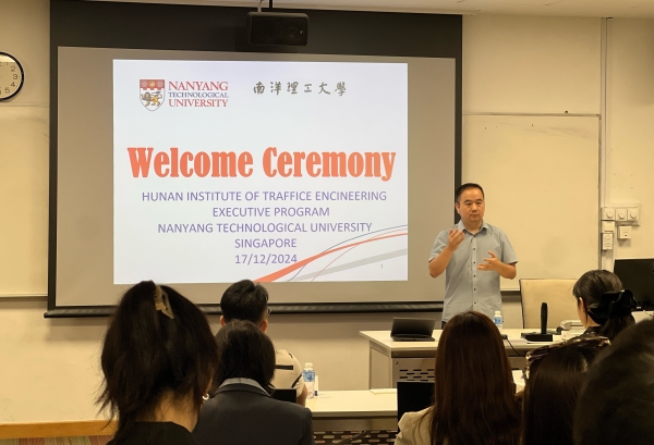 李斌院長在歡迎辭中對湖南交通工程學(xué)院教師團隊的到來表示了誠摯的歡迎,并深入介紹了南洋理工大學(xué)在教育領(lǐng)域的卓越成就與長遠發(fā)展規(guī)劃。他著重強調(diào),本次研修培訓(xùn)是兩校深化學(xué)術(shù)交流與合作的關(guān)鍵契機,期望教師們借此機會深入研習(xí)新加坡前沿的教育理念與教學(xué)方法,將所學(xué)轉(zhuǎn)化為推動湖南交通工程學(xué)院教育發(fā)展的新動力,促進雙方教育水平的協(xié)同提升。