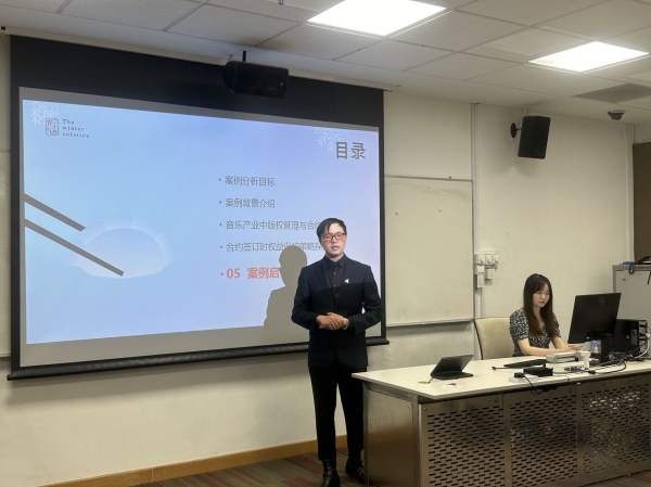 第一組尹世杰老師以《吳青峰與林暐哲版權(quán)糾紛案分析》為題,選取極具現(xiàn)實(shí)意義的案例深入剖析。他詳細(xì)介紹了案例背景,清晰闡述了音樂產(chǎn)業(yè)版權(quán)管理的重要性以及合約細(xì)節(jié)的復(fù)雜性,并著重講解了簽訂合約時(shí)權(quán)益保護(hù)策略的制定方法,以及提升版權(quán)保護(hù)意識、防范法律風(fēng)險(xiǎn)的要點(diǎn)。通過尹老師的精彩匯報(bào),大家對該版權(quán)糾紛案及音樂產(chǎn)業(yè)版權(quán)問題有了深刻認(rèn)識,此次匯報(bào)也成為一次重要的知識產(chǎn)權(quán)保護(hù)教育交流。