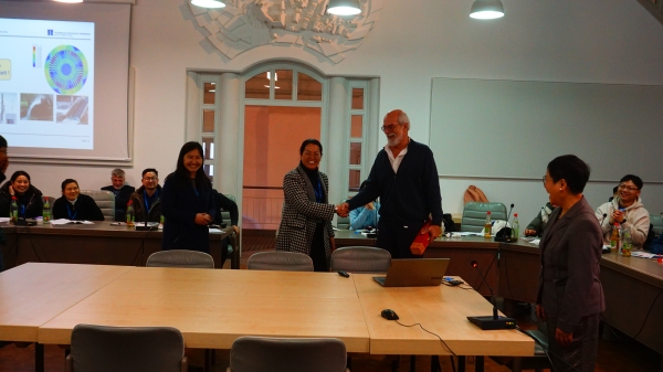 ▲代表團團長李燕麗代表學校向赫希斯塔特市政府贈送禮品
