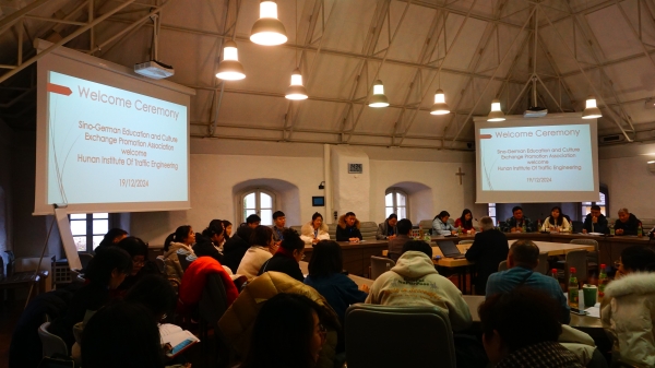 來自德國赫希斯塔特市快訊(通訊員 湯贊 攝影 羅鄭雅)當?shù)貢r間12月19日上午,德國法蘭克福赫希斯塔特市老市政廳內氣氛莊重而熱烈,湖南交通工程學院第二批教師赴德研修培訓班開班儀式在此盛大啟幕。法蘭克福赫希斯塔特市市長杰拉爾德?布雷姆(Gerald Brehm)、中德教育文化交流促進會會長貝恩德?洛奈斯(Bernd Lohnei?)、副會長羅斯邁斯爾(Rossmeissl)蒞臨出席,與我校51名骨干教師共同見證這一重要時刻。開班儀式由中德教育文化交流促進會秘書長袁燕主持,彰顯出兩國在教育交流合作領域的高度重視與誠摯情誼。