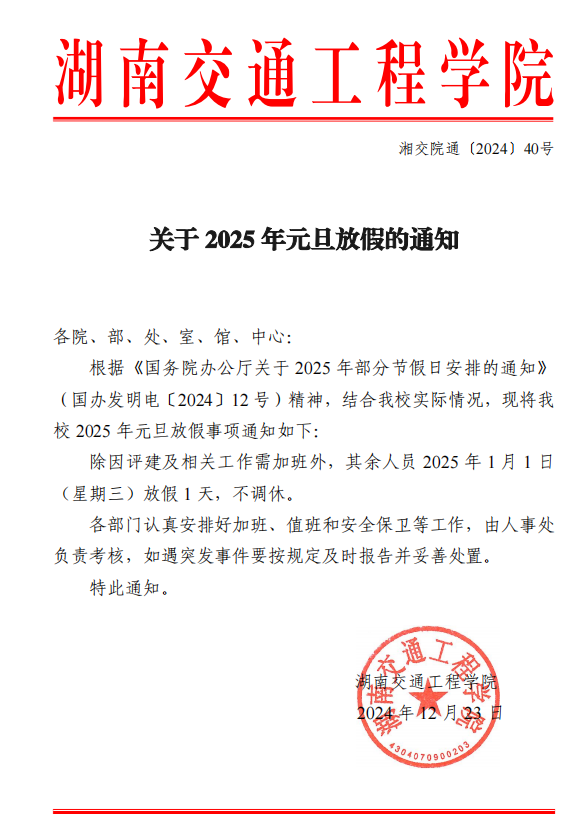 湖南交通工程學院關于 2025 年元旦節(jié)放假通知