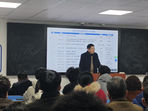 隨著本科教學(xué)工作合格評估復(fù)評的臨近,機電工程學(xué)院于2025年3月3日19:00在機電樓410教室隆重舉行本科教學(xué)工作合格評估復(fù)評動員誓師大會,全面吹響了迎接復(fù)評的沖鋒號角。此次誓師大會由校黨委委員、機電工程學(xué)院黨總支書記羅斐教授主持,副校長蔡炎斌出席并發(fā)表重要講話,學(xué)院領(lǐng)導(dǎo)班子、全體教職工及學(xué)生代表參加。大會旨在凝聚全體師生的力量,全力以赴,確保復(fù)評工作的圓滿成功。