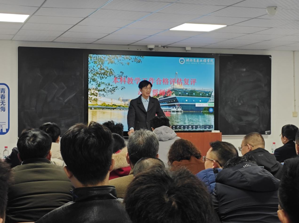 大會首先由院長楊啟正教授以"強特色補短板,以評促建謀發(fā)展"為題作動員講話。他強調(diào),本科教學(xué)工作合格評估是對學(xué)校教育教學(xué)質(zhì)量的全面檢驗,也是推動學(xué)院內(nèi)涵式發(fā)展的關(guān)鍵契機。他總結(jié)了學(xué)院在預(yù)評估過程中存在的一些不足,并制定了詳細的整改時間表。他要求全體教師高度重視此次評估,以評估為契機,進一步提升教學(xué)質(zhì)量,完善教學(xué)管理。楊院長特別強調(diào),要嚴格按照評估指標體系,逐條對照、逐項落實,確保每一項工作都有人抓、有人管、有人負責(zé)。他呼吁全體師生要注重細節(jié),查漏補缺,確保每一項指標都能達到或超過評估標準。