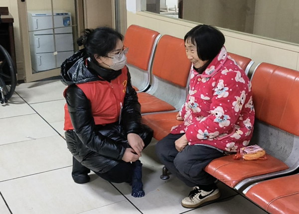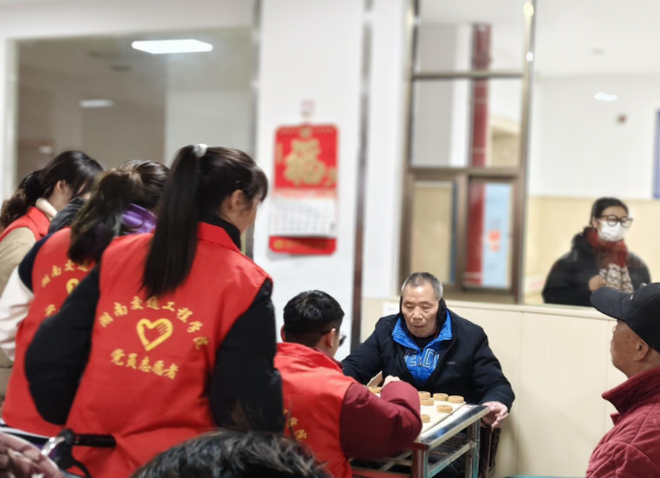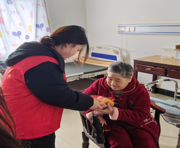 活動當(dāng)天,志愿者們?yōu)槔先怂腿チ伺D?、水果、面包等慰問品?/span>其后志愿者與老人們一起談心、嘮家常,親切的詢問老人家的生活狀況和身體情況,在聊天的過程中也向他們傳遞了醫(yī)護相關(guān)的健康知識,并且?guī)椭先藗兇驋咝l(wèi)生,陪他們下象棋解悶兒。同時,志愿者們還利用所學(xué)的專業(yè)知識為敬老院的老人們?yōu)槔先藴y量血壓,聽診檢查,并為一些長期服藥的老人們提出生活、飲食等方面的合理化建議,現(xiàn)場氣氛溫馨融洽,整個養(yǎng)老院沉浸在濃厚的親情氛圍中。