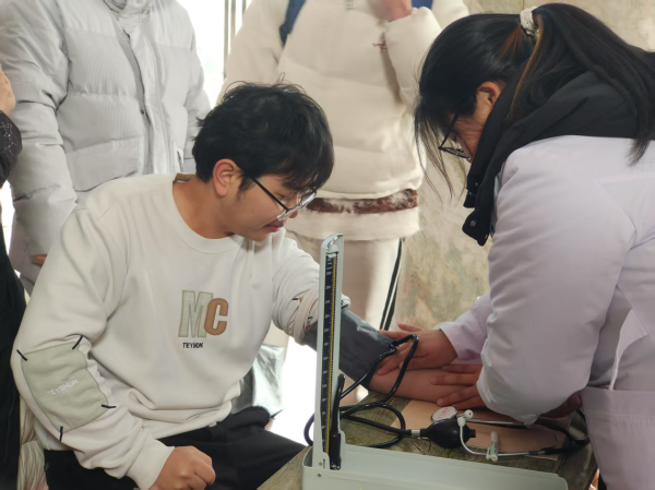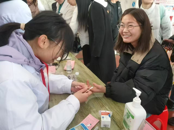 志愿者們早早抵達現(xiàn)場,有序地布置場地,為義診做好準備工作。隨著下課鈴聲響起,教學樓大廳漸漸熱鬧起來,來往的師生們被義診活動和志愿者們熱情的招呼所吸引,紛紛駐足參與。在義診現(xiàn)場,志愿者們充分展現(xiàn)出專業(yè)素養(yǎng)和奉獻精神。他們耐心地引導師生們進行各項檢查,有條不紊地為大家測量血壓、檢測視力、檢查色盲及色弱。此外,還提供了推拿按摩、艾灸等中醫(yī)特色服務。面對來往師生們的咨詢,志愿者們總是耐心傾聽,并根據(jù)每個人的身體狀態(tài)提出實用的健康小常識和科學合理的建議,看著來往的師生們一張張笑臉,義診活動的溫暖一定傳遞到了他們的心里。