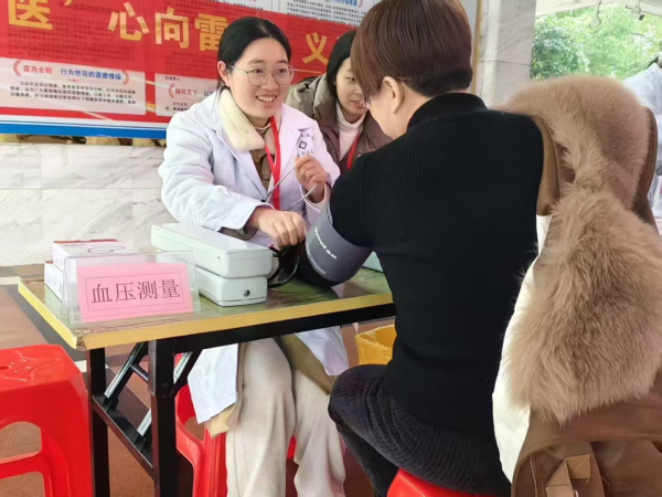 陽春三月,雷鋒精神如春風化雨,滋潤著校園的每一寸土地。為傳承和弘揚雷鋒精神,3月5日,醫(yī)學技術與護理學院組織學院師生在教學樓大廳開展了“‘醫(yī)’心向雷鋒,義診暖校園”的愛心義診活動。此次活動由學院黨總支書記鄧麗、院長秦曉群、黨總支副書記兼團總支書記劉建軍、副院長廖小立、學生支部書記賀九芳帶領全體師生黨員、老師代表和學生代表共同參與。