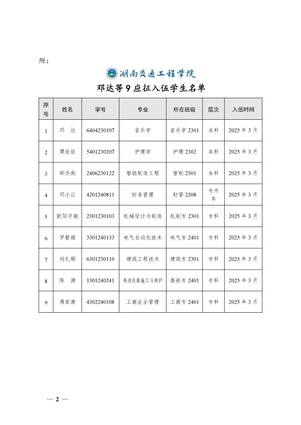 關于同意鄧達等9名同學保留學籍的決定(湘交院學管〔2025〕7號)