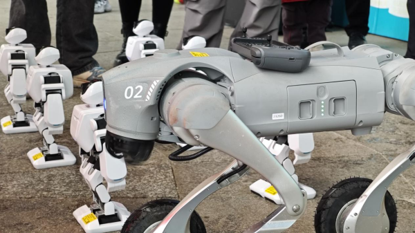 在科技創(chuàng)新展區(qū),學(xué)生團(tuán)隊(duì)攜“智能垃圾分類助手”“模塊化太陽能充電器”等12項(xiàng)原創(chuàng)作品亮相。其中,“再生材料3D打印工坊”吸引近百名居民駐足,通過廢舊塑料再生為耗材的全流程演示,直觀展現(xiàn)環(huán)??萍槛攘?;樂聚人形機(jī)器人編隊(duì)以毫米級(jí)同步精度演繹科技舞蹈,宇樹四足機(jī)械狗靈活翻越障礙,現(xiàn)場(chǎng)觀眾爭相體驗(yàn)平板操控機(jī)械狗穿越障礙的樂趣。