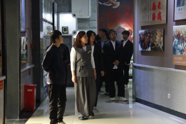 隨后,師生們步入紀念館展廳。展廳內(nèi)一幅幅珍貴歷史照片,生動的展現(xiàn)了英雄們在不同歷史時期為國家獨立,民族解放和人民幸福所做出的巨大貢獻。辛敬鳳書記結(jié)合展廳飽含故事的文物,講述革命先烈們英勇抗爭的故事,以及英雄們的無私奉獻。讓大家對那段歷史有了更直觀的認識。同學們聽得認真,不時提出問題,現(xiàn)場學習氛圍濃厚。