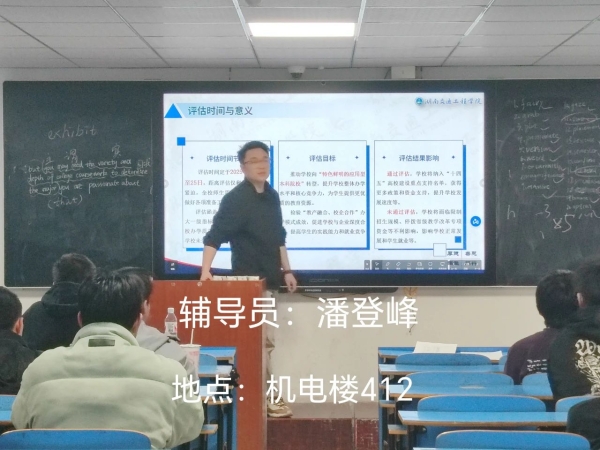 此次班會(huì)緊緊圍繞“評(píng)估倒計(jì)時(shí)15天”核心任務(wù)展開。輔導(dǎo)員們深入解讀了評(píng)估的“三個(gè)基本”內(nèi)涵以及“二十字方針”,用生動(dòng)的案例與詳實(shí)的數(shù)據(jù),向同學(xué)們闡釋了評(píng)估對(duì)提升學(xué)校聲譽(yù)、推動(dòng)學(xué)生未來發(fā)展的重大影響。