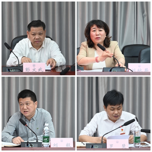 黨委委員、常務(wù)副校長彭文武,黨委委員、副董事長劉秋菊, 黨委委員、紀(jì)委書記劉毅,黨委委員羅斐作中心發(fā)言。黨委副書記馮良貴、副校長蔡炎斌作交流發(fā)言。