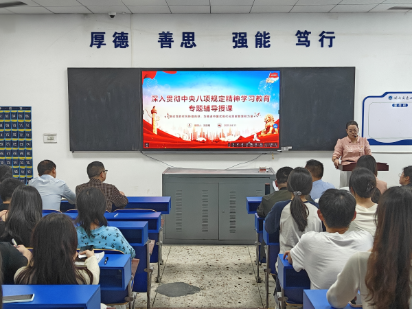 黨課的主講人是電氣與信息工程學(xué)院黨總支書記劉忠明。他以《深入貫徹中央八項(xiàng)規(guī)定精神學(xué)習(xí)教育》為主題,深入淺出地展開了一場(chǎng)思想洗禮之旅。劉書記首先從宏觀層面闡述了中央八項(xiàng)規(guī)定的重要意義,他用生動(dòng)形象的比喻,將中央八項(xiàng)規(guī)定比作全面從嚴(yán)治黨的“關(guān)鍵鑰匙”,是中國(guó)式現(xiàn)代化進(jìn)程中的“堅(jiān)實(shí)基石”,是新時(shí)代黨的建設(shè)中的“凈化器”,更是黨以身作則、自我革命的“鮮活名片”。他強(qiáng)調(diào),深入學(xué)習(xí)貫徹中央八項(xiàng)規(guī)定精神,不僅是鞏固深化主題教育和黨紀(jì)學(xué)習(xí)教育成果、縱深推進(jìn)全面從嚴(yán)治黨的關(guān)鍵一步,更是密切黨群干群關(guān)系、鞏固黨的執(zhí)政基礎(chǔ)的必由之路。
