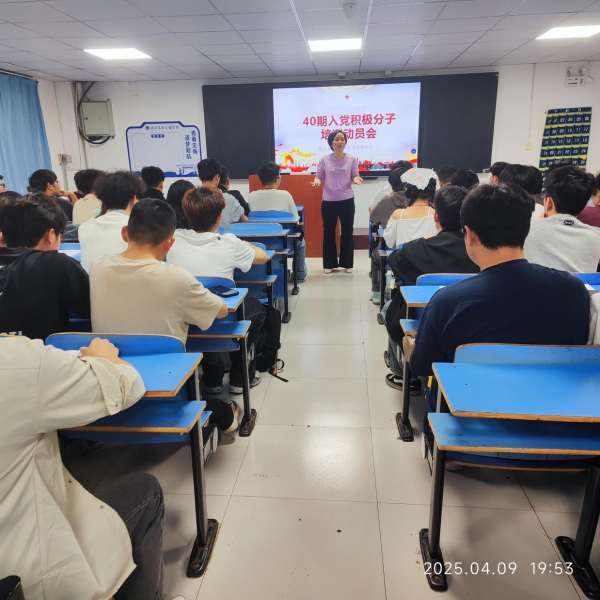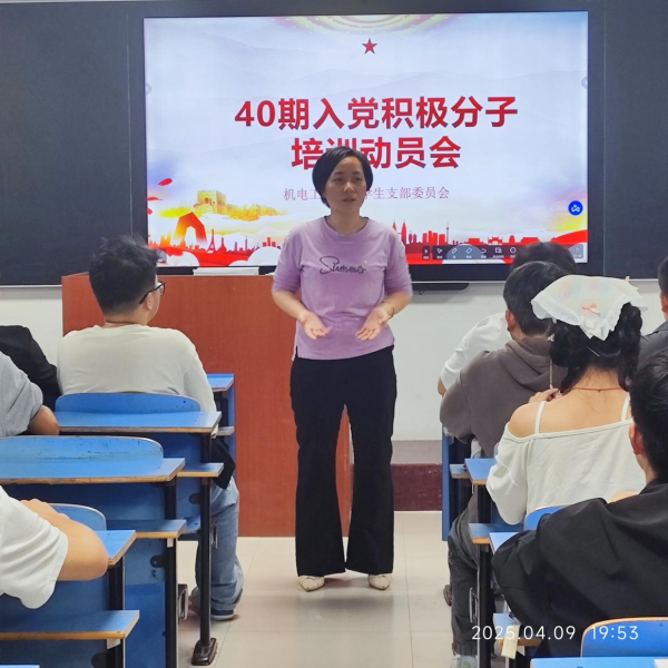 為了深入學習貫徹習近平新時代中國特色社會主義思想和黨的二十屆三中全會精神,全面貫徹落實《中國共產(chǎn)黨普通高等學?;鶎咏M織工作條例》,切實加強入黨積極分子的思想政治理論教育,4月9日下午,機電工程學院在410教室隆重舉行了第40期入黨積極分子培訓啟動儀式。