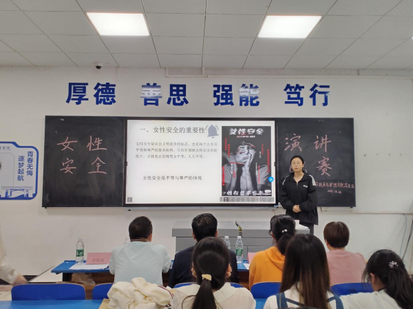 通過這次演講比賽,不僅讓同學(xué)們學(xué)到了豐富的女性安全知識,增強了她們自我保護的意識和能力,更讓她們學(xué)會了如何更好地、安全地保護自己。同時此次關(guān)于女性安全的演講比賽更希望每一位女生都能以此次比賽為契機,學(xué)會愛護自己,守護自己的安全,在未來書寫美好的人生篇章。