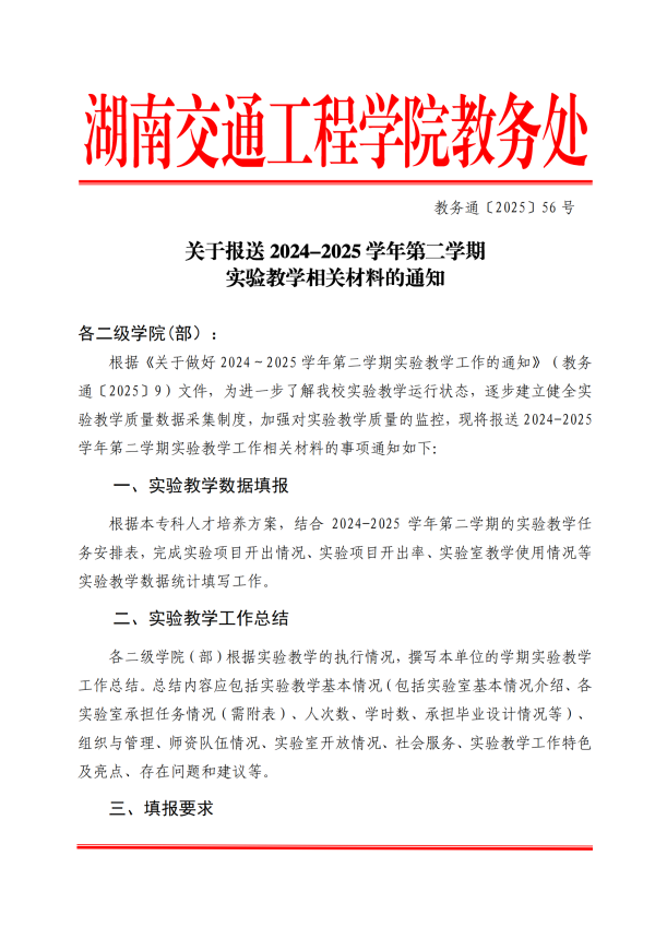 關(guān)于報送2024-2025學(xué)年第二學(xué)期實驗教學(xué)相關(guān)材料的通知