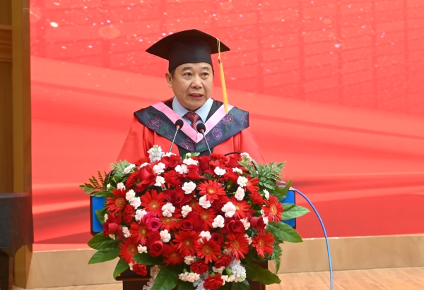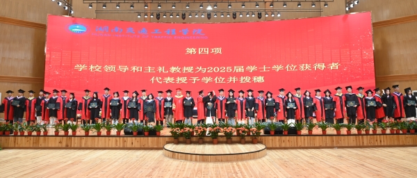 山長(zhǎng)水闊,背上行路錦囊。校學(xué)位評(píng)定委員會(huì)主席、執(zhí)行校長(zhǎng)劉杰以《厚德強(qiáng)能擔(dān)使命,篤行礪劍啟新程》為題作精彩致辭。他代表學(xué)校全體師生向?qū)W有所成、順利畢業(yè)的2025屆全體畢業(yè)生表示熱烈祝賀,為他們的成長(zhǎng)與進(jìn)步感到欣慰。他指出,四年時(shí)光不長(zhǎng)不短,而人生就是這一個(gè)個(gè)四年不經(jīng)意過去化為回憶,學(xué)校就是在一個(gè)個(gè)四年中迎來送走一批批莘莘學(xué)子,學(xué)校的主角永遠(yuǎn)是學(xué)生!有了同學(xué)們的認(rèn)可和選擇才有了學(xué)校辦學(xué)層次的不斷躍遷。他對(duì)畢業(yè)生們?cè)谛K哪赀M(jìn)行了回顧和祝愿共勉:一是回望來時(shí)路:以奮斗鑄就交院精神。在求知中突破,在實(shí)踐中擔(dān)當(dāng),在磨礪中成長(zhǎng)。二是直面新時(shí)代:以篤行譜寫人生華章。珍惜一切,感恩他人,創(chuàng)造自我,成就最好的自己,鑄就人生的豐碑。三是放眼望未來:以擔(dān)當(dāng)肩負(fù)時(shí)代召喚。擔(dān)當(dāng)時(shí)代使命,不負(fù)青春韶華。他表示,“湘交院”是學(xué)子們夢(mèng)想啟航的地方,無論走向何處、行至多遠(yuǎn),母校永遠(yuǎn)是大家的堅(jiān)強(qiáng)后盾和精神家園,母校永遠(yuǎn)會(huì)為大家祝福、給大家力量,歡迎同學(xué)們?;丶铱纯?。