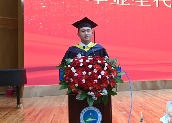 畢業(yè)生代表交通運(yùn)輸工程學(xué)院物流工程2101班黃楷同學(xué)致畢業(yè)感言,“今朝畢業(yè),不訴離傷,他日重逢,各領(lǐng)風(fēng)騷”。他回顧了自己在校走過的4年求學(xué)之路,表達(dá)對(duì)母校的感恩、不舍和依戀;表示今后將帶著母校的期望,勇?lián)鷷r(shí)代重任,努力成長(zhǎng)為一名有理想、敢擔(dān)當(dāng)、能吃苦、肯奮斗的新時(shí)代好青年,奔赴祖國(guó)最需要的地方去,施展抱負(fù)、建功立業(yè)。