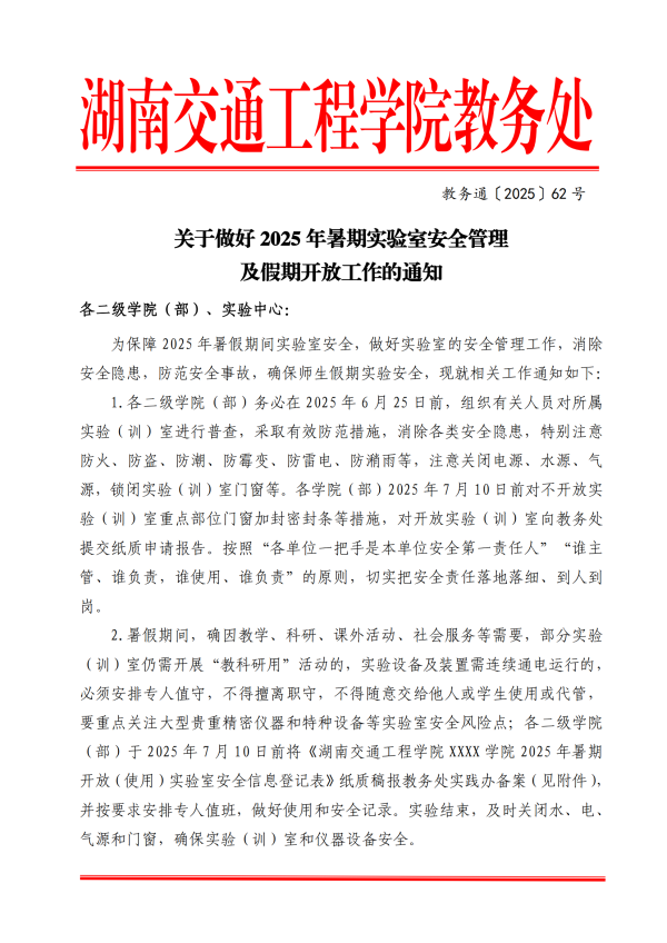 關(guān)于做好2025年暑期實(shí)驗(yàn)室安全管理及假期開(kāi)放工作的通知