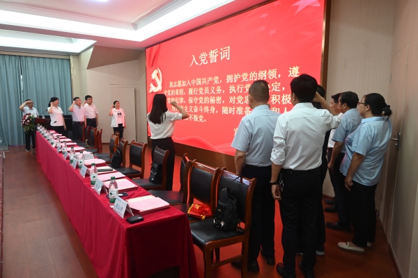 伴隨著莊嚴(yán)的國歌聲,學(xué)校慶祝建黨104周年暨“七一”表彰大會正式開始。首先,組織統(tǒng)戰(zhàn)部副部長李佩佩領(lǐng)銜新黨員面向黨旗莊嚴(yán)宣誓、老黨員重溫入黨誓詞。