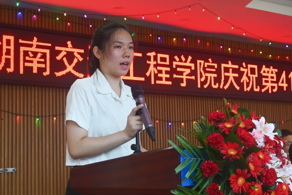 經(jīng)濟(jì)管理學(xué)院國(guó)貿(mào)2201班鄧捷文代表學(xué)生發(fā)言,她向所有孜孜不倦,辛勤耕耘在教學(xué)一線的老師們致以崇高的敬意和感謝。她說(shuō):“作為新時(shí)代大學(xué)生,能回報(bào)老師的就是牢記你們的教育,努力學(xué)習(xí)、奮勉向上,認(rèn)真踏實(shí)的學(xué)好老師教給我們的學(xué)問(wèn)和技能,使自己成長(zhǎng)為有益于社會(huì)、服務(wù)于社會(huì)、奉獻(xiàn)于社會(huì)的高素養(yǎng)應(yīng)用型人才。”