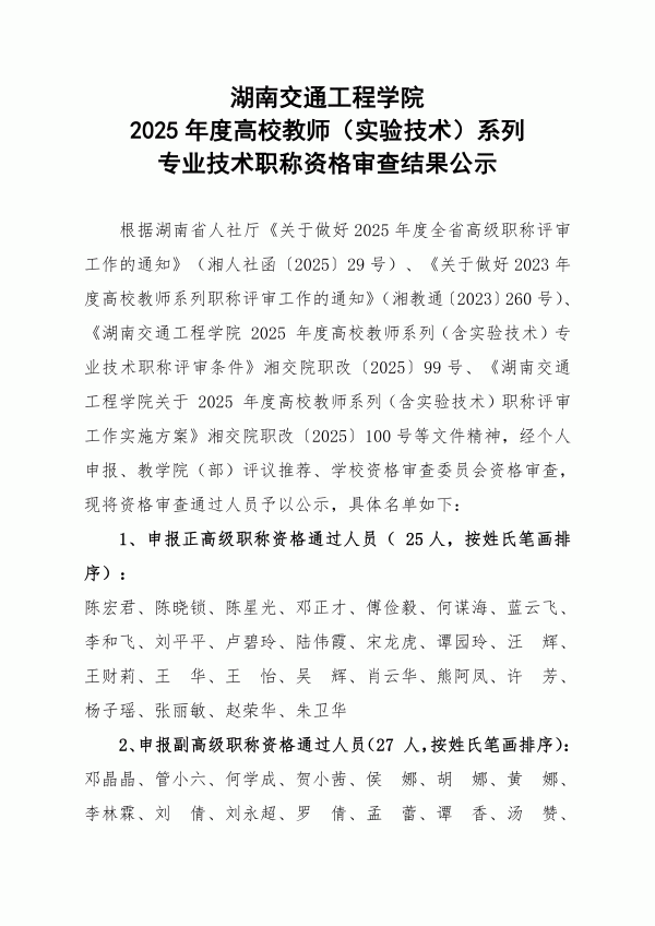湖南交通工程學(xué)院 2025年度高校教師(實(shí)驗(yàn)技術(shù))系列專業(yè)技術(shù)職稱資格審查結(jié)果公示.pdf