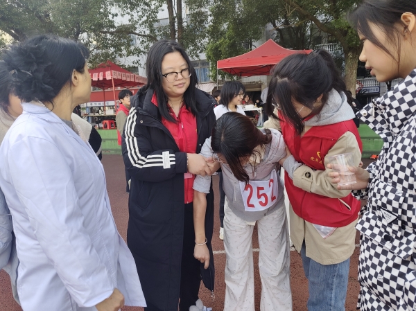 “愛心小屋”作為醫(yī)護(hù)學(xué)院的特色志愿服務(wù)項(xiàng)目,已連續(xù)多年為校運(yùn)會(huì)提供醫(yī)療服務(wù)。專業(yè)為翼,溫情為壤,他們依舊在幕后默默守護(hù),陪伴每一個(gè)拼搏的身影,見證運(yùn)動(dòng)員們每一次自我突破的高光時(shí)刻。今年,志愿者們提前籌備,精心布置站點(diǎn),配備了更齊全的急救基礎(chǔ)物資,并針對運(yùn)動(dòng)損傷、低血糖等狀況制定了周密的應(yīng)急方案。賽事期間,志愿者們?nèi)虉?jiān)守崗位,為長跑運(yùn)動(dòng)員提供賽后恢復(fù)指導(dǎo)。從專業(yè)的急救處理,到遞上一杯溫水、一聲鼓勵(lì),他們的細(xì)致守護(hù),為揮灑汗水的運(yùn)動(dòng)員注入了安心與動(dòng)力。這間由醫(yī)護(hù)學(xué)院打造的愛心小屋,不僅是醫(yī)療站,更是溫暖的“加油站”,它以專業(yè)與奉獻(xiàn),讓團(tuán)結(jié)互助的精神與體育風(fēng)采一同閃耀。