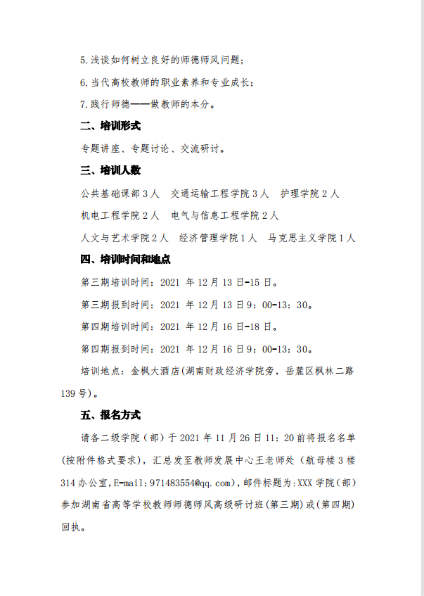 關于參加湖南省高等學校教師師德師風高級研討班(第三期)(第四期)的通知.pdf
