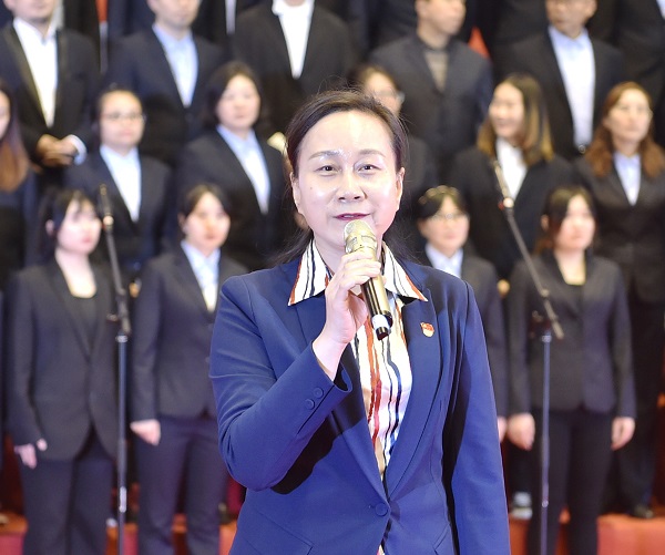 晚會(huì)開始前,全體起立,奏唱中華人民共和國(guó)國(guó)歌,隨后蘇玲為本場(chǎng)晚會(huì)致辭,她說(shuō)道,唱響紅色歌曲不僅僅是一種追憶,一種傳承,更重要的是一種感受,一種力量,通過這次活動(dòng),希望我們?nèi)熒寄軌蚰廴诵?,凝聚士氣,凝聚力量,唱出激情,唱出感情,唱出豪情,并將這種精神和力量融入學(xué)校建設(shè)發(fā)展各項(xiàng)工作之中!
